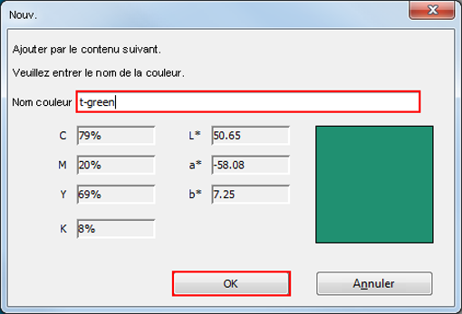 Entrez le Nom couleur et cliquez sur OK.