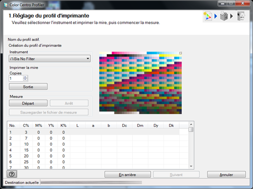 Sélectionnez un colorimètre dans Instrument sur l'écran de mesure des mires.