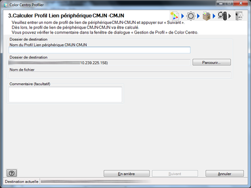 Dans le champ Commentaire, entrez, si besoin est, un commentaire à intégrer au profil que vous créez. Vous pouvez confirmer le commentaire en sélectionnant le profil sur Color Centro Profiler.