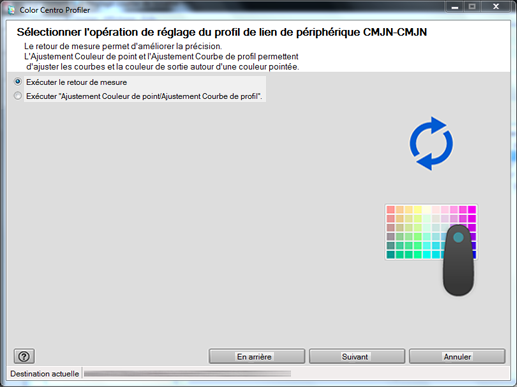 Exécuter le retour de mesure ou Exécuter "Ajustement Couleur de point/Ajustement Courbe de profil et cliquez sur Suivant.