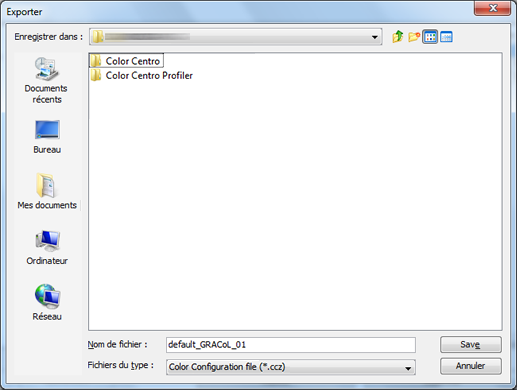 Vous pouvez exporter un profil de source RVB du contrôleur d'image dans Local, Mes documents ou Réseau.