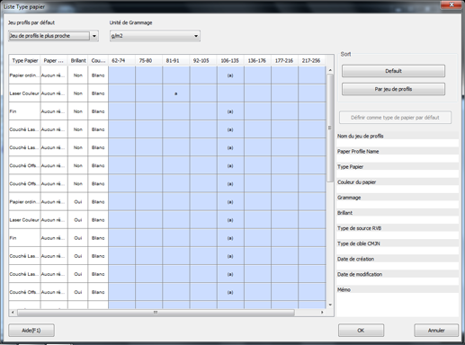 4. Pour définir un jeu de profils comme type de papier par défaut, sélectionnez le jeu de profils et cliquez sur Définir comme type de papier par défaut.