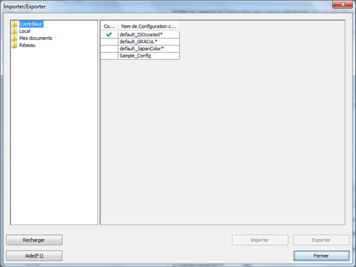Explication supplémentaireLorsque vous sélectionnez plusieurs configurations couleur, la commande Exporter n'est pas disponible.