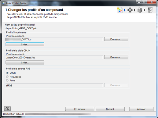 Spécifiez le profil cible CMJN utilisé par le jeu de profils. Pour utiliser le profil cible CMJN existant, cliquez sur Parcourir. Pour créer le nouveau profil cible CMJN existant, cliquez sur Créer.