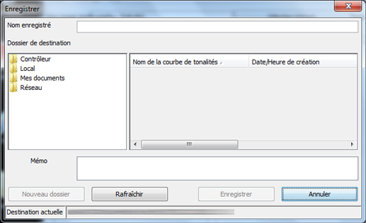 Lorsque vous sélectionnez Contrôleur comme dossier de destination, la courbe de tonalité est enregistrée dans le contrôleur d'image.