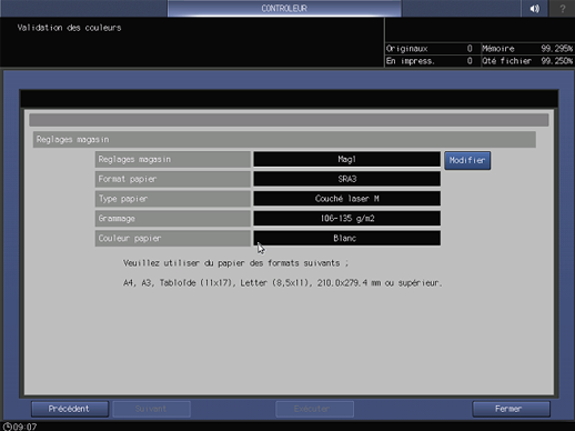 Couleur|Exécuter la validation des couleurs : écran tactile