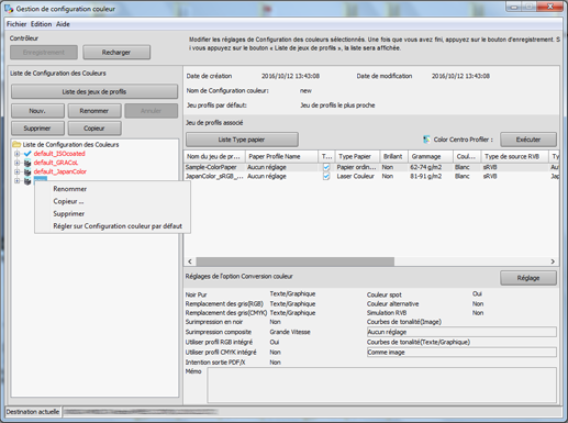 Faites un clic droit sur la configuration couleur que vous souhaitez définir comme configuration par défaut et sélectionnez Régler sur Configuration couleur par défaut.