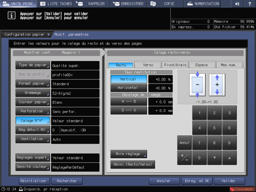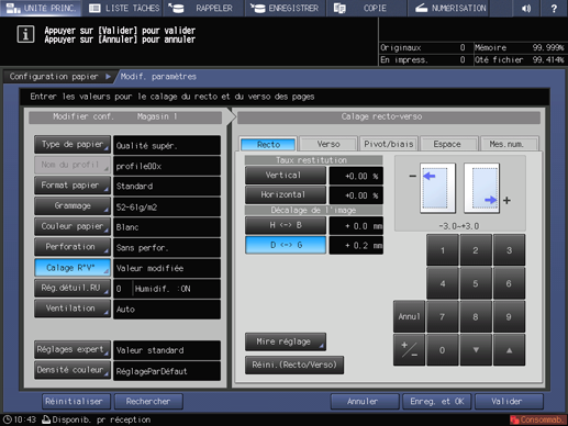 Lorsque vous effectuez le calage recto pour un papier de marque, grammage ou format nouveau, appuyez sur Enreg. et OK et passez à l'étape suivante.