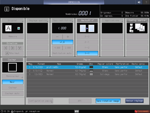 Un profil papier dont le « format papier » ou l'« orientation » diffère du papier chargé dans le magasin, apparaît en grisé et n'est pas sélectionnable.