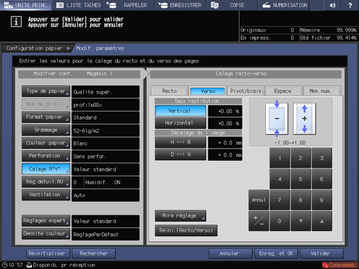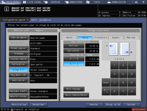Ce réglage est utile pour régler l'agrandissement et la position de l'image au verso en fonction du résultat de sortie des données de tâche qui vont être utilisées.