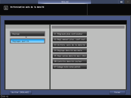Explication supplémentairePour effectuer le contrôle automatique de la densité couleur avec l'option RU (unité de relais RU-511), réglez l'Exéc.régl.auto. sur Activé.