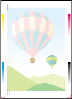 Cette fonction imprime automatiquement les repères cadrage et la pastille dégradé de réglage dans l'espacement repère.