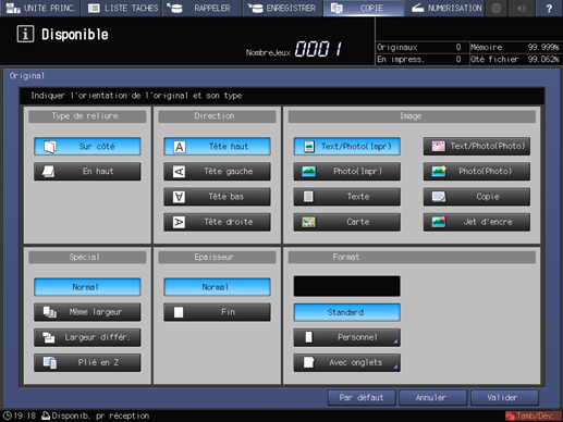 Appuyez sur l'onglet COPIE pour afficher l'écran COPIE.