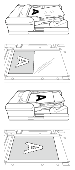 Spécifiez l'orientation de l'original placé dans le chargeur ADF ou sur la vitre d'exposition. Si vous ne paramétrez pas l'orientation de l'original placé dans le chargeur ADF ou sur la vitre d'exposition, vous risquez de ne pas obtenir les résultats de copie escomptés, surtout si réalisez des copies sous les conditions suivantes.