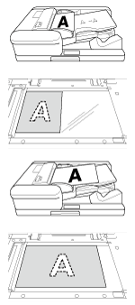 | Original placé tête (haut) vers le côté droit de l'ADF. Ou original placé sur la vitre d'exposition, tête (haut) vers le côté droit de la vitre d'exposition. |
