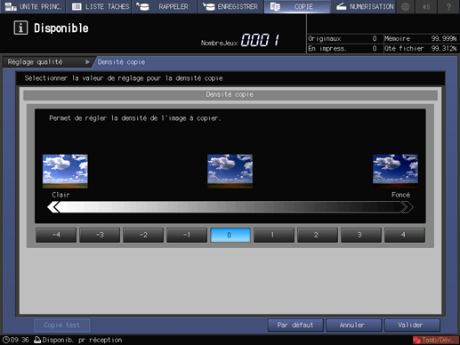 Appuyez sur l'onglet Densité copie pour afficher l'écran Densité copie.