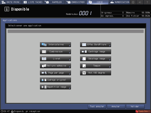 Appuyez sur Valider sur l'écran Application pour revenir à l'écran COPIE.