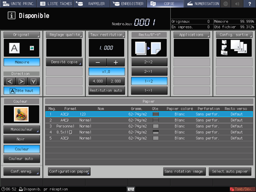 Appuyez sur Valider sur l'écran Application pour revenir à l'écran COPIE.