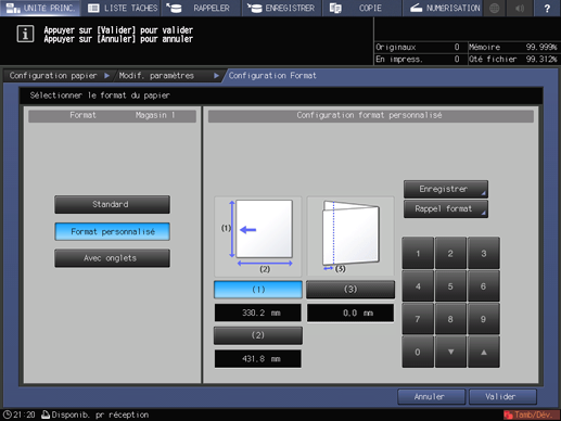 Explication supplémentaireAppuyez sur la touche numérique du format personnalisé à utiliser, puis appuyez sur Valider.