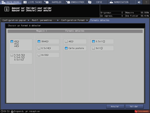 Explication supplémentaireLes formats standard détectables diffèrent selon le magasin papier.