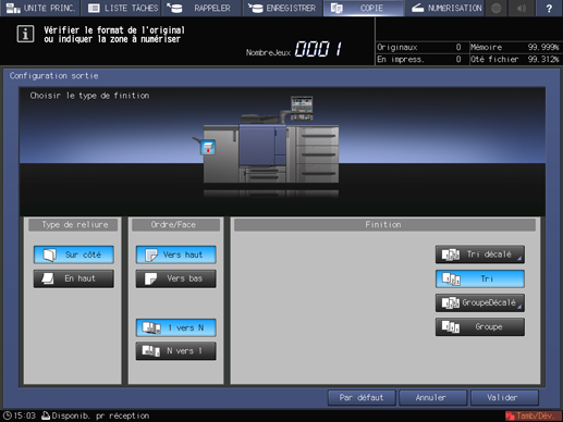 Appuyez sur l'onglet COPIE pour afficher l'écran COPIE.
