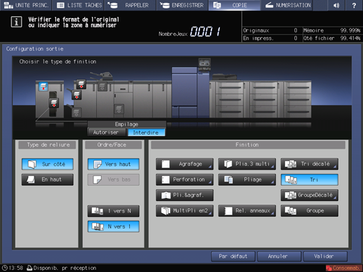 Explication supplémentaireSélectionnez Vers haut ou Vers bas et 1 vers N ou N vers 1 sous Ordre/Face selon les besoins.