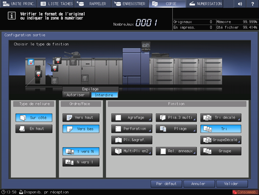Explication supplémentaireSélectionnez Vers haut ou Vers bas et 1 vers N ou N vers 1 sous Ordre/Face selon les besoins.