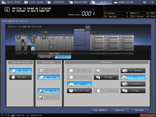Appuyez sur l'onglet COPIE pour afficher l'écran COPIE.