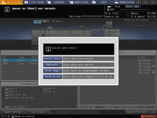 Appuyez sur Annuler tâche.