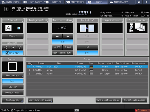 Appuyez sur l'onglet COPIE pour afficher l'écran COPIE.