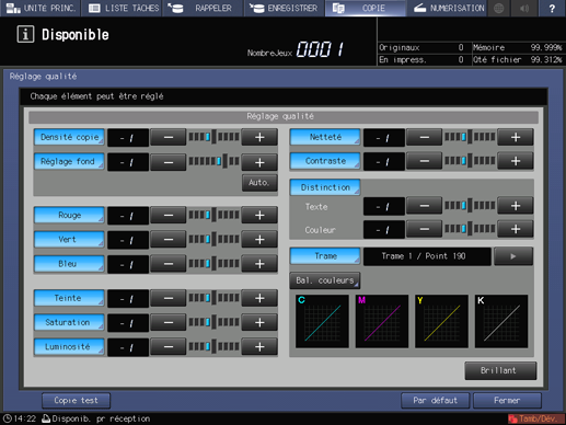 Appuyez sur Fermer sur l'écran Réglage qualité pour revenir à l'écran COPIE.
