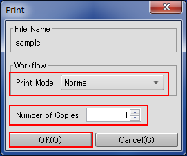 Sélectionnez Mode d'impression, entrez Nombre de Copies, puis cliquez sur OK.