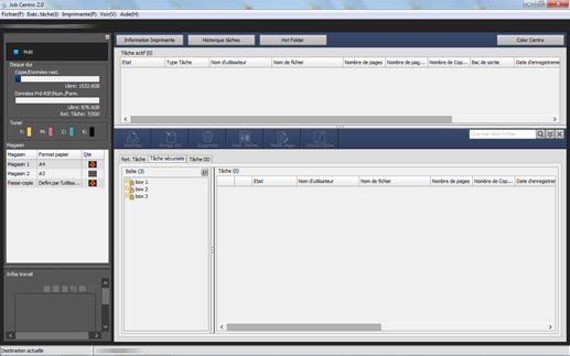 Démarrez Job Centro pour vous connecter à la machine. Pour des détails sur le démarrage de Job Centro, voir Démarrer Job Centro.