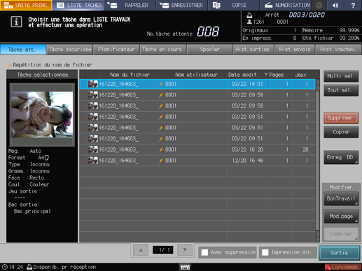 Explication supplémentairePour en savoir plus sur les icônes affichées dans la liste, voir Ecran [Tâche att.].