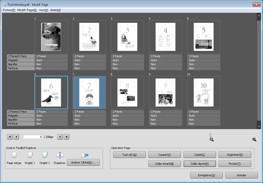 Apportez des modifications aux pages (par ex. copie, déplacement, suppression / configuration de chapitres / insertion de papier à onglet).