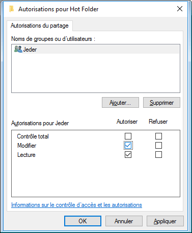 Sélectionnez Tout le monde, cochez la case Autoriser dans Changer et cliquez sur OK.