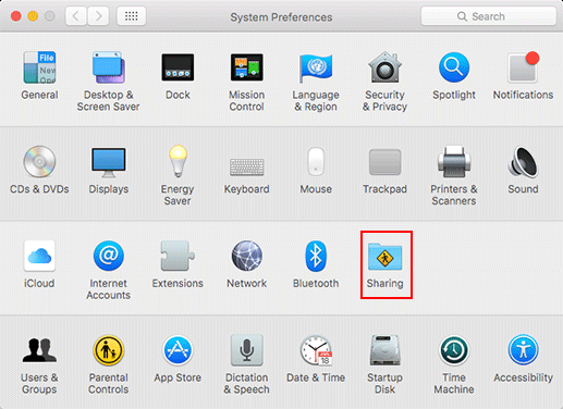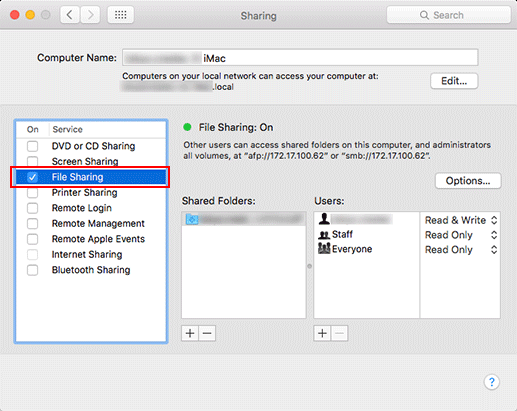 Cochez la case File Sharing dans Service, puis fermez la fenêtre.