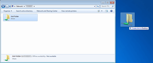 Copiez le hot folder partagé du réseau sur le bureau via l'ordinateur duquel accéder le hot folder.