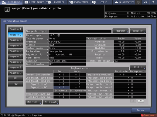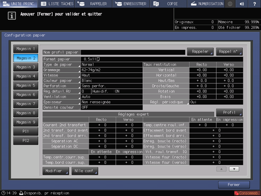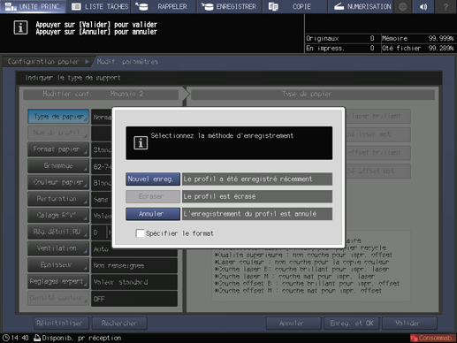 Explication supplémentaireLe profil papier enregistré peut être modifié ou supprimé sur l'écran Catalogue papier.
