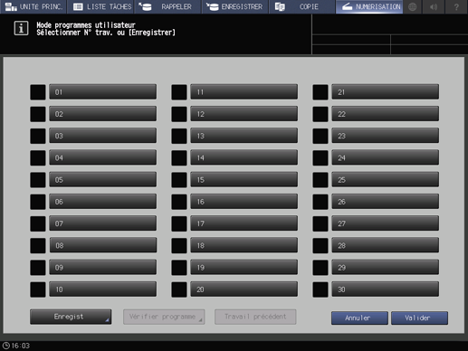 condition préalableVous pouvez enregistrer un maximum de 30 programmes de numérisation.