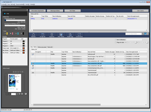 Sélectionnez une tâche dans la liste de tâches actives sur l'écran Job Centro.