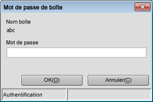 L'écran Mot de passe de boîte s'affiche.