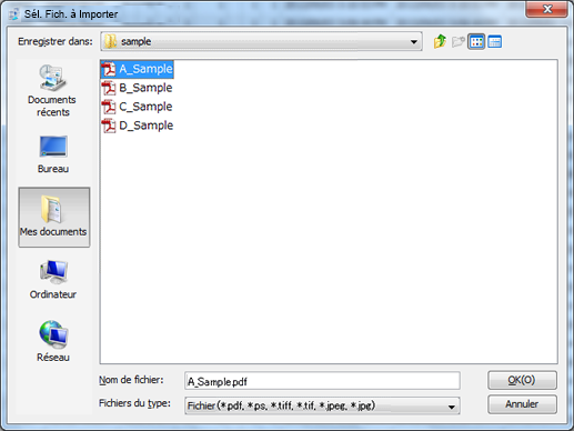 L'écran Sél. Fich. à Importer s'affiche.