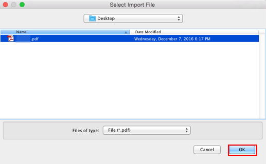 condition préalableLes types de fichiers pouvant être importés sont PS, PDF, TIFF, TIF, JPEG, JPG, ZIP et PPML.