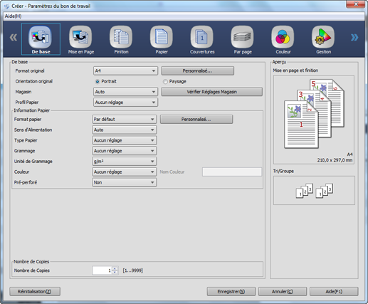 Explication supplémentaireDans Réglage Priorité Impression, spécifiez s'il faut donner la priorité aux réglages de l'original ou aux réglages d'impression du hot folder. Toutefois, même si vous sélectionnez Réglage impression de chaque tâche, la détermination du Mode d'impression et du Type de sortie dépend des réglages d'impression du hot folder.