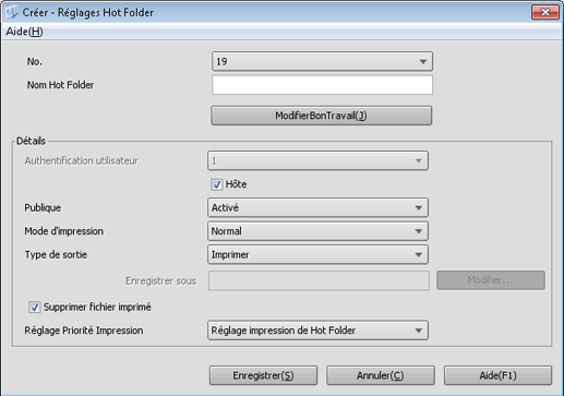 Spécifiez le nom d'enregistrement et le nom du hot folder.