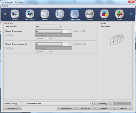 Vous pouvez configurer les couvertures du réglage d'impression.
