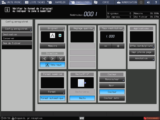 Explication supplémentairePour des détails, voir[Ecran ENREGISTRER].