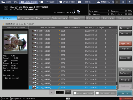 Explication supplémentaireEn cas de tâches créées par la machine, comme les tâches copie et enregistrées, l'icône machine