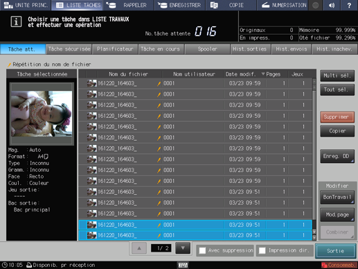 Explication supplémentaireAppuyez sur Multi sél. pour sélectionner plusieurs tâches.